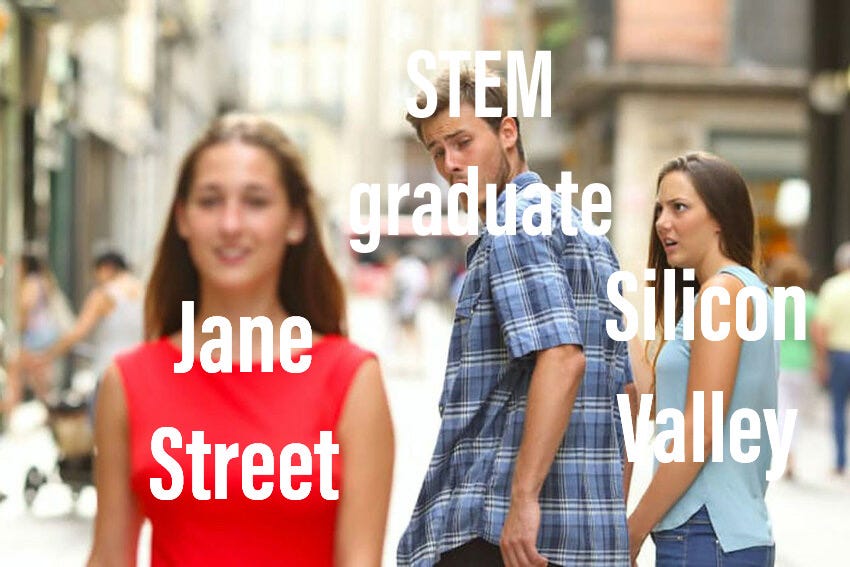 When I was at university in the late nineties the dream job for anyone interested in finance was Goldman Sachs or Morgan Stanley front office. I speak to the top STEM graduates from Oxbridge, MIT, and similar places and these days it is private equity or hedge funds. But there is one firm that is top dog through their eye-popping salaries for interns – Jane Street. They have even started to throw large six-figure USD salaries to kids at IIT in India Jane Street hires from IIT Madras